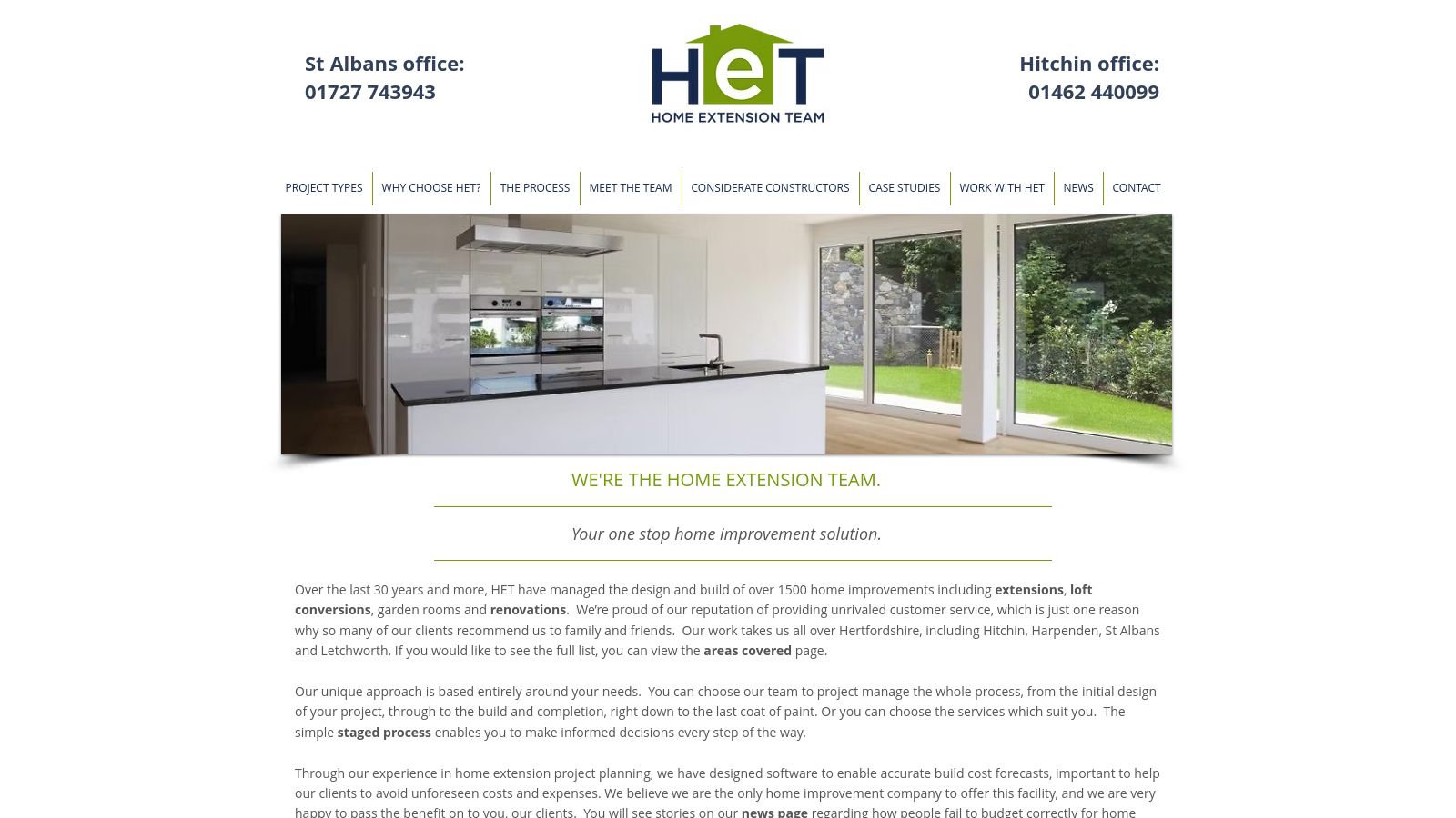 Home Extension Team (HET) is a design and build company established in Hertfordshire in 1989, specializing in residential property transformations. The firm focuses on creating additional living spaces through single and double-storey extensions, loft conversions, and garage conversions. Additionally, the company undertakes internal renovations, aiming to enhance existing homes for their clients. Operating from offices in Hitchin and St Albans, HET extends its services across Hertfordshire, Cambridgeshire, Bedfordshire, and North London.