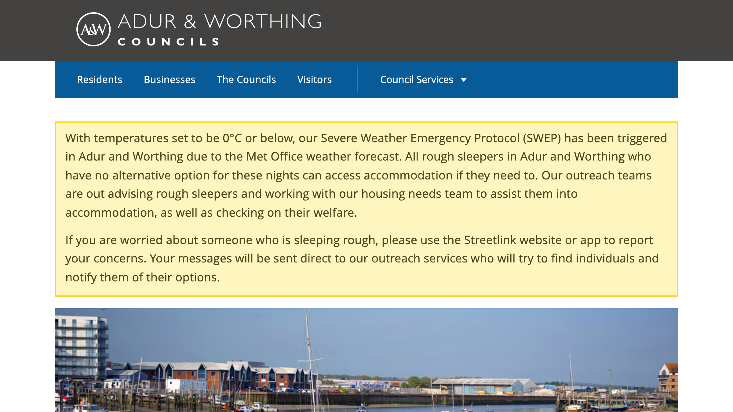 Council website screenshot